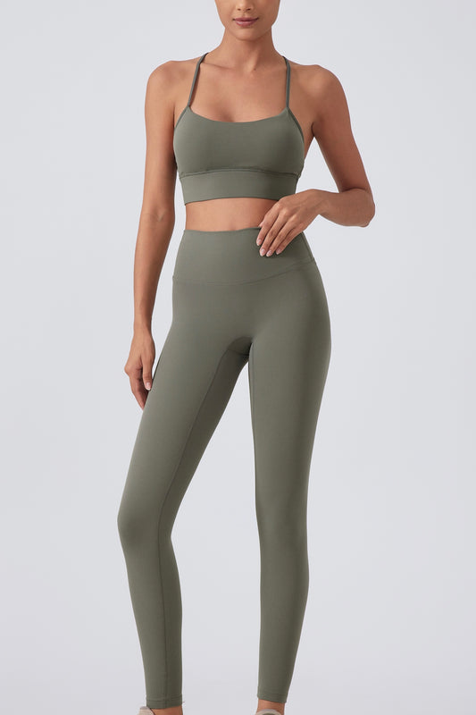 Cool-air Spaghetti Straps Cross Back Yoga Bra&Shorts Set